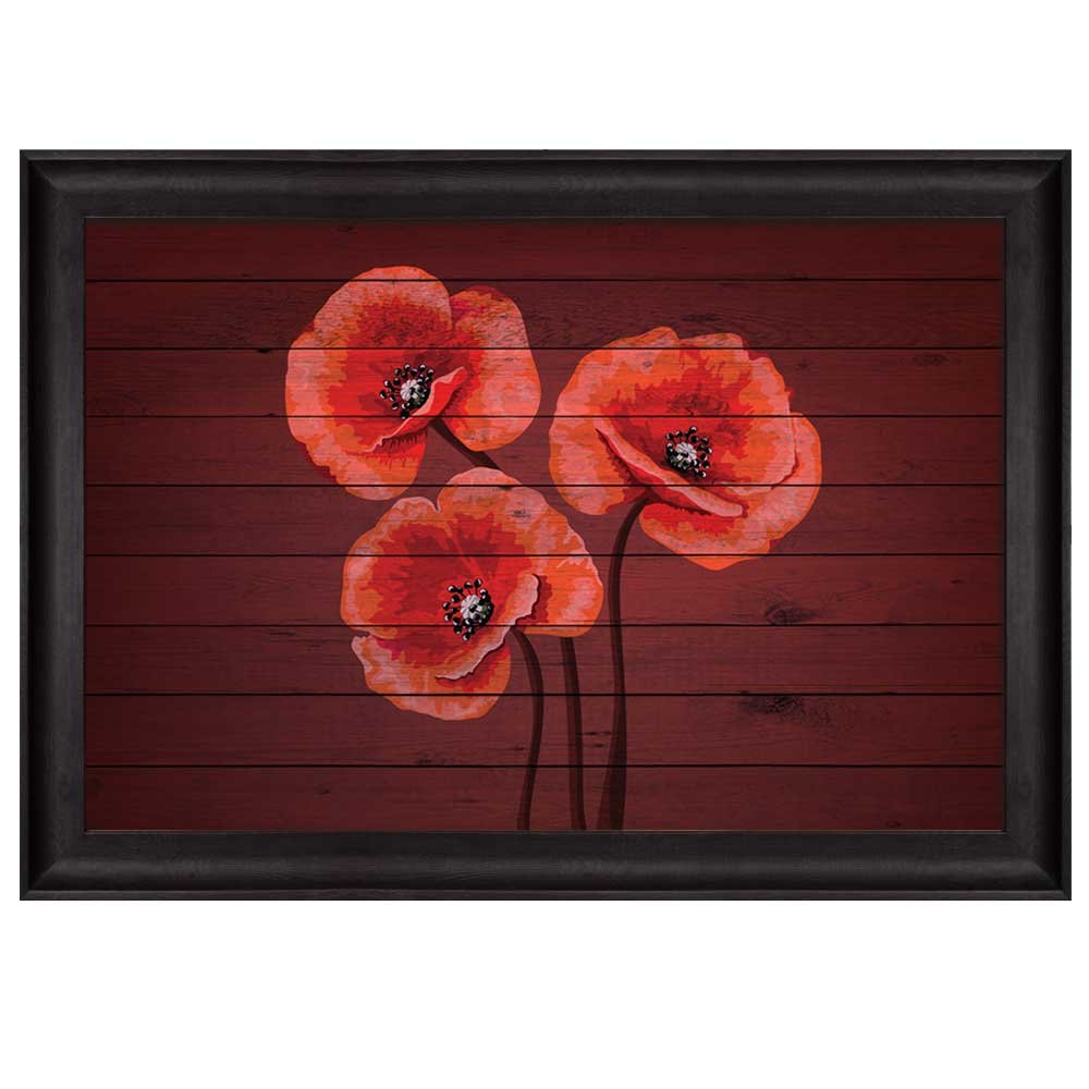 Bouquet of Red Poppy Flowers on Cherry Wood Panels Nature Framed Art