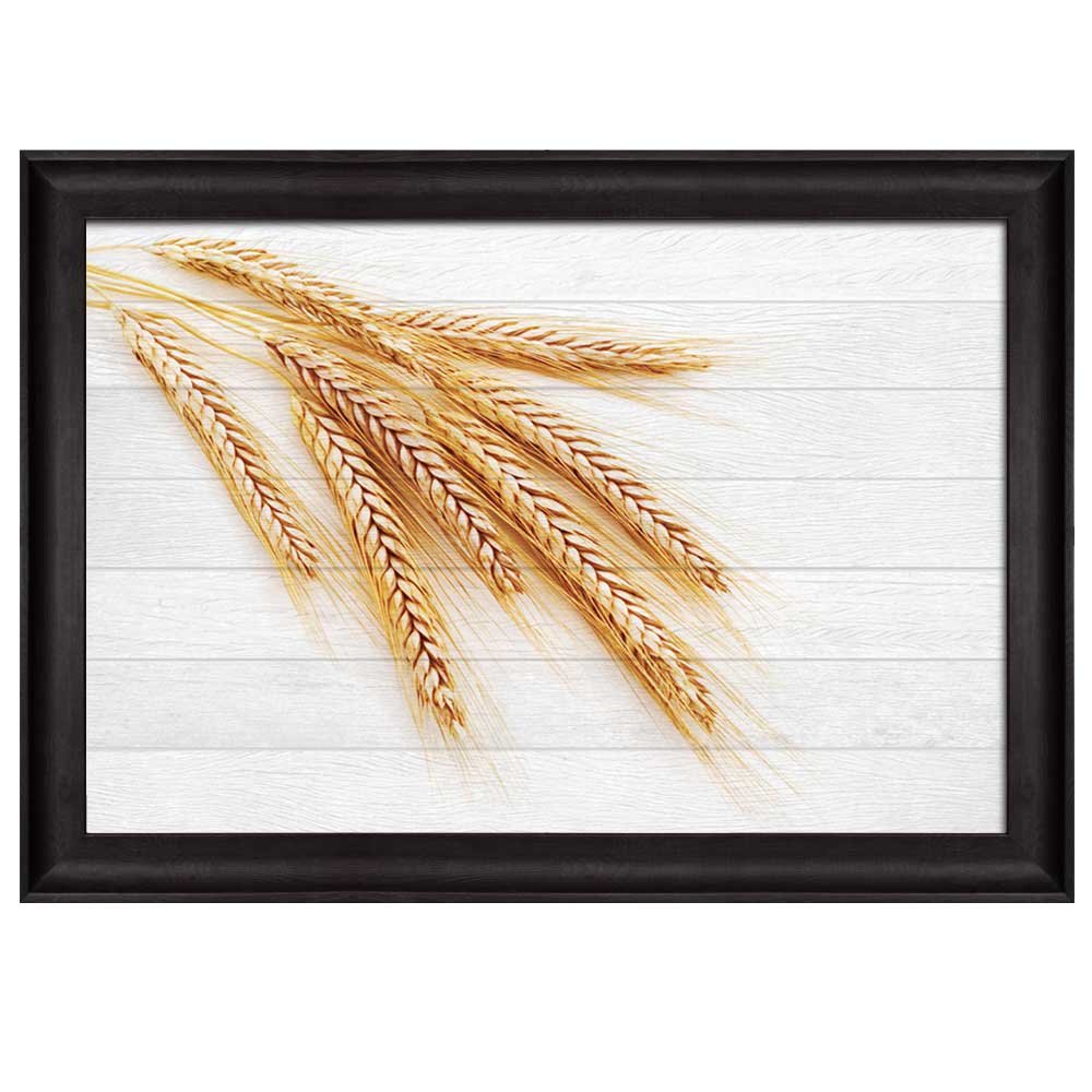Branches of Wheat Over White Wooden Panels Background Nature Framed Art