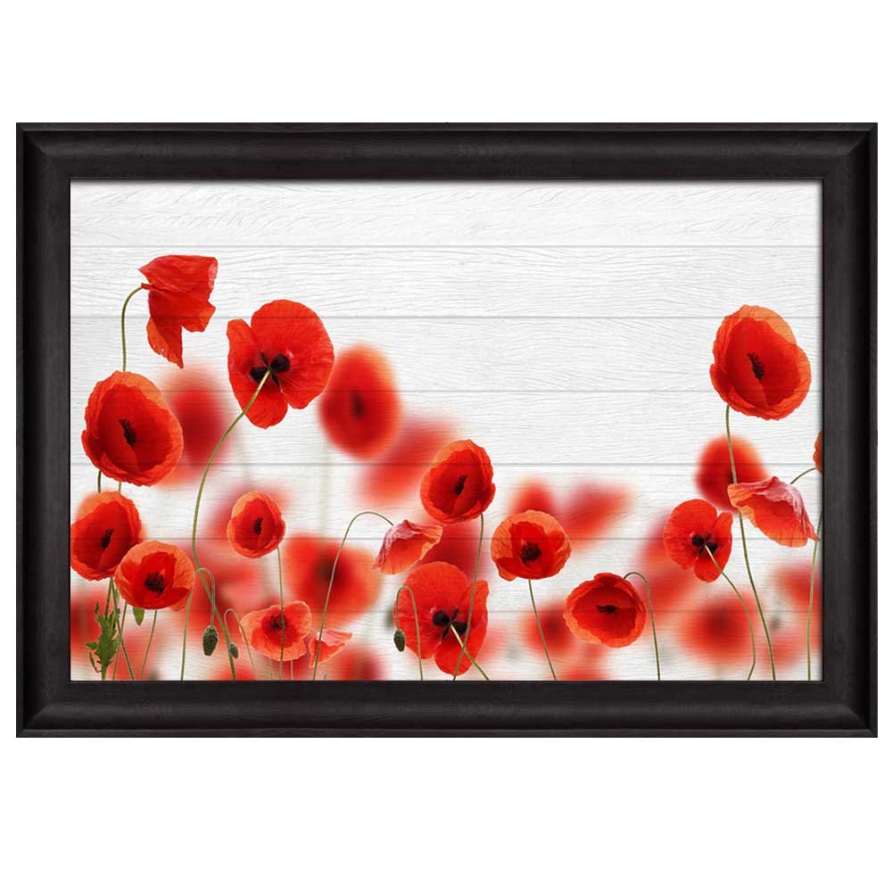 Red Poppy Field Over White Wood Panels Nature Framed Art